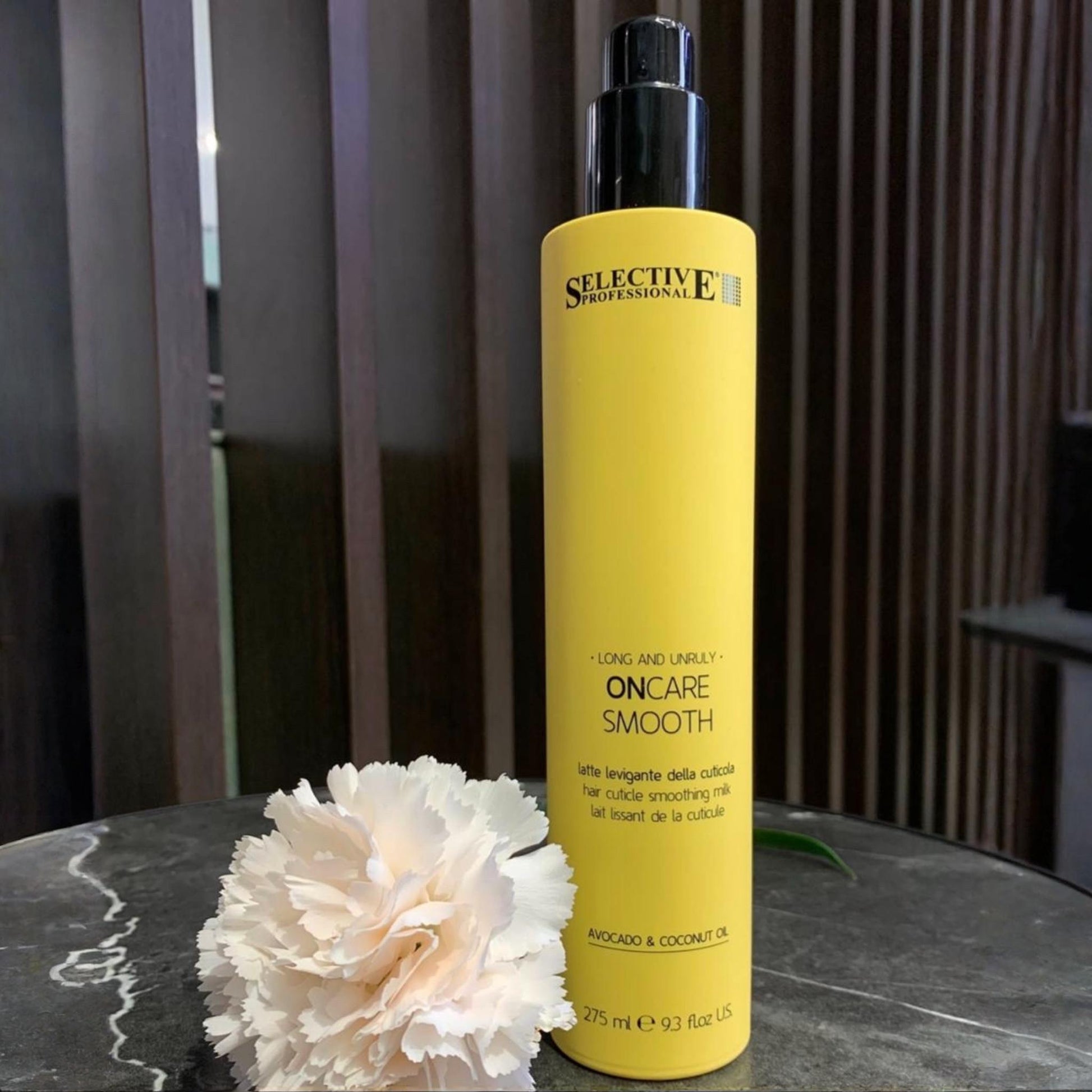 It smoothes the cuticles and eliminates the frizz effect, tames, cares for and protects the hair. Hair looks healthy and full.